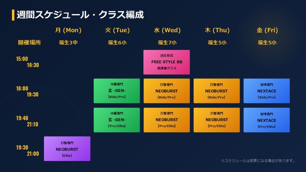 ※開催場所は随時、変更になる可能性がございます。最新のスケジュールをご確認の上、お越しください。